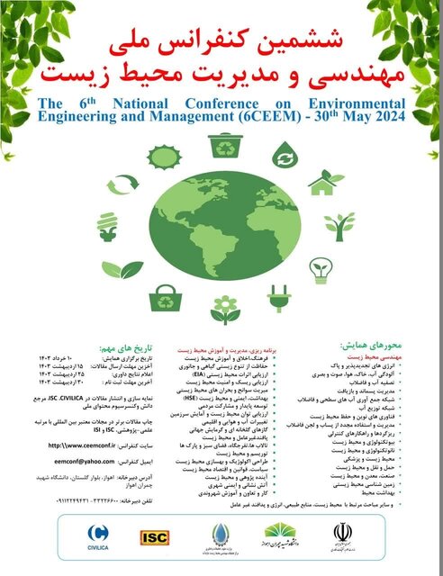 ششمین کنفرانس ملی مهندسی و مدیریت محیط زیست برگزار می شود